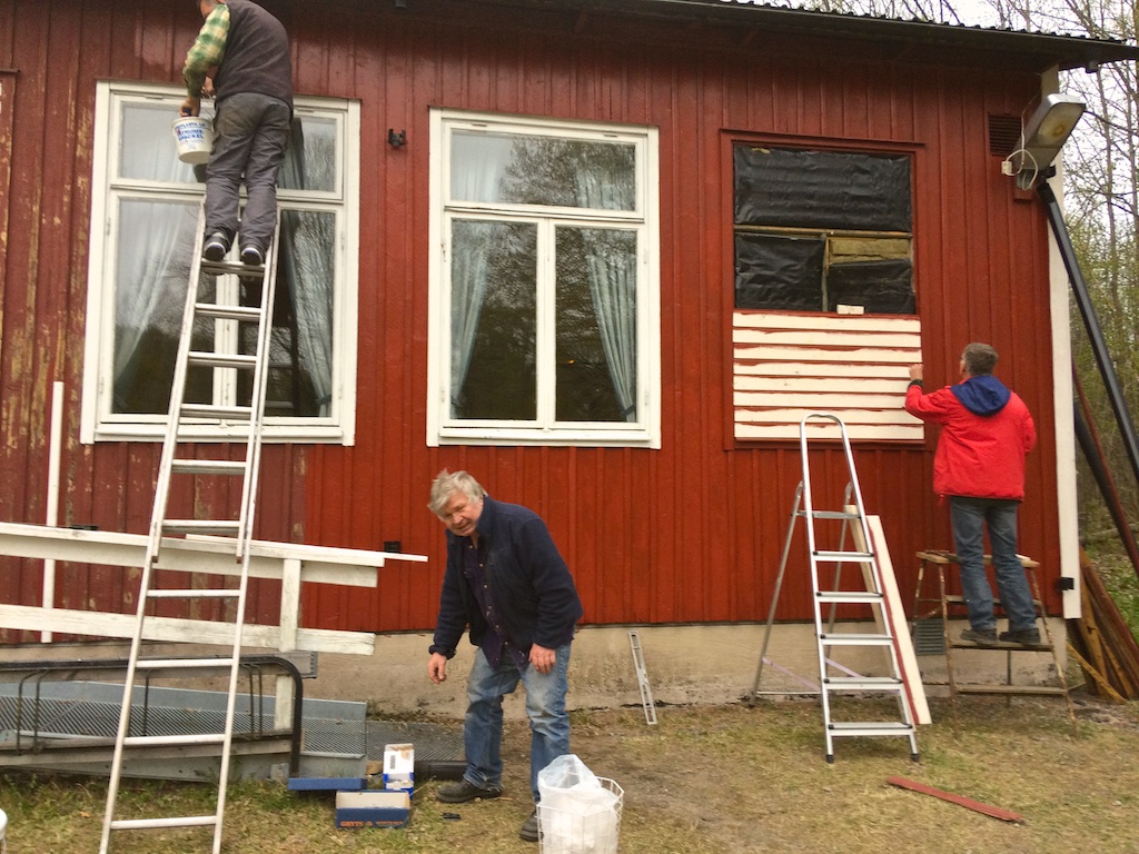 Under några onsdagar och helger har fasaden på Gillesstugan fått en ansiktslyftning. Ett antal medlemmar har tillsammans bytt en del panel och skrapat och målat både fram- och baksidan på huset.