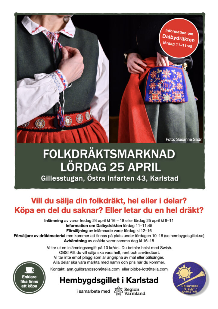Välkommen på Folkdräktsmarknad på Gillesstugan lördag 25 april.