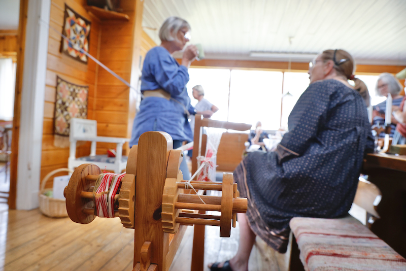 I vår slöjdsal arbetar vi med textilslöjd av olika slag – vävning, broderi, sömnad av folkdräkter mm. Vi brukar också försöka anordna någon kurs om året med egna eller externa ledare. En del av våra alster blir uppskattade vinster i föreningens lotterier.